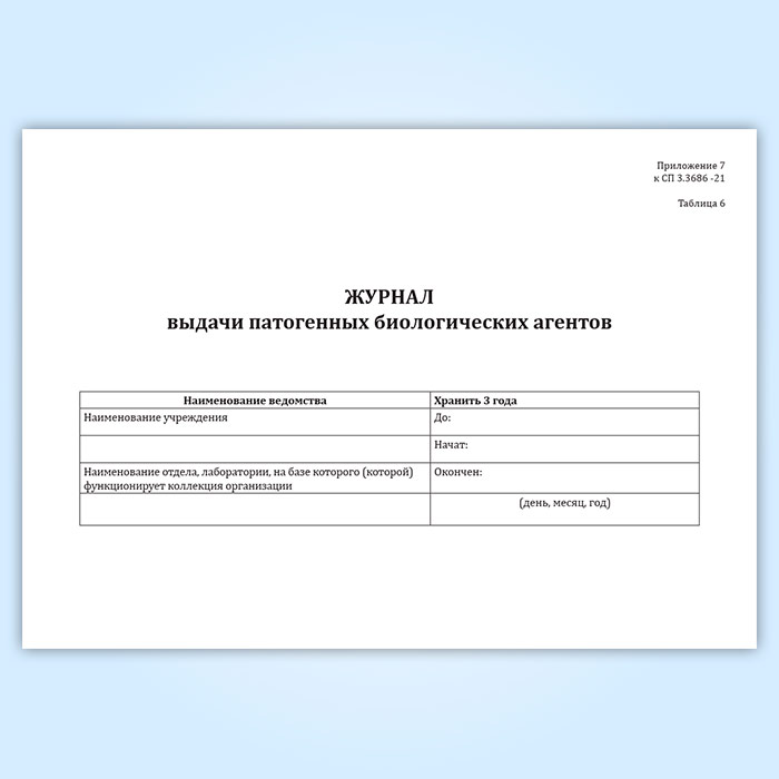 Журнал выдачи патогенных биологических агентов (СанПиН 3.3686-21) в Альметьевске купить