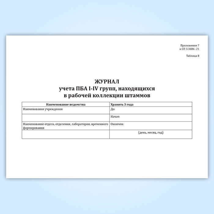 Журнал учета ПБА I-IV групп, находящихся в рабочей коллекции штаммов в Альметьевске купить