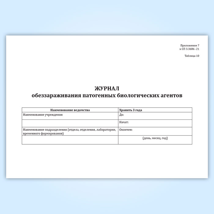 Журнал обеззараживания патогенных биологических агентов (СанПиН 3.3686-21) в Альметьевске купить