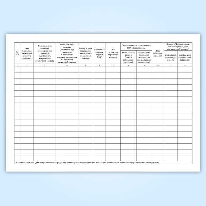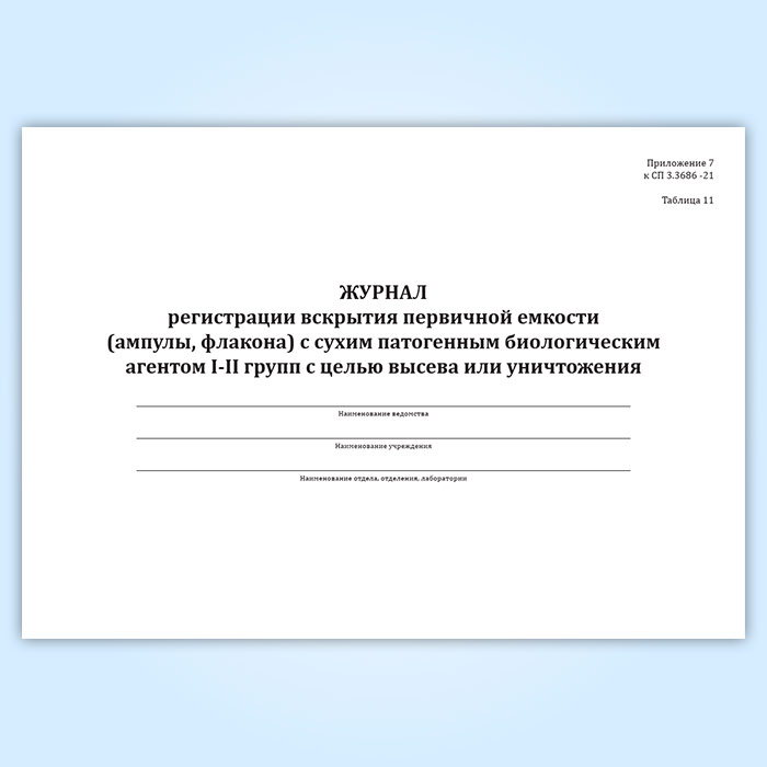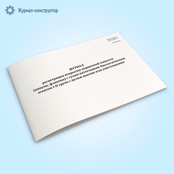 Журнал регистрации вскрытия первичной емкости (ампулы, флакона) с сухим патогенным биологическим агентов I-II групп с целью высева или уничтожения в Альметьевске купить