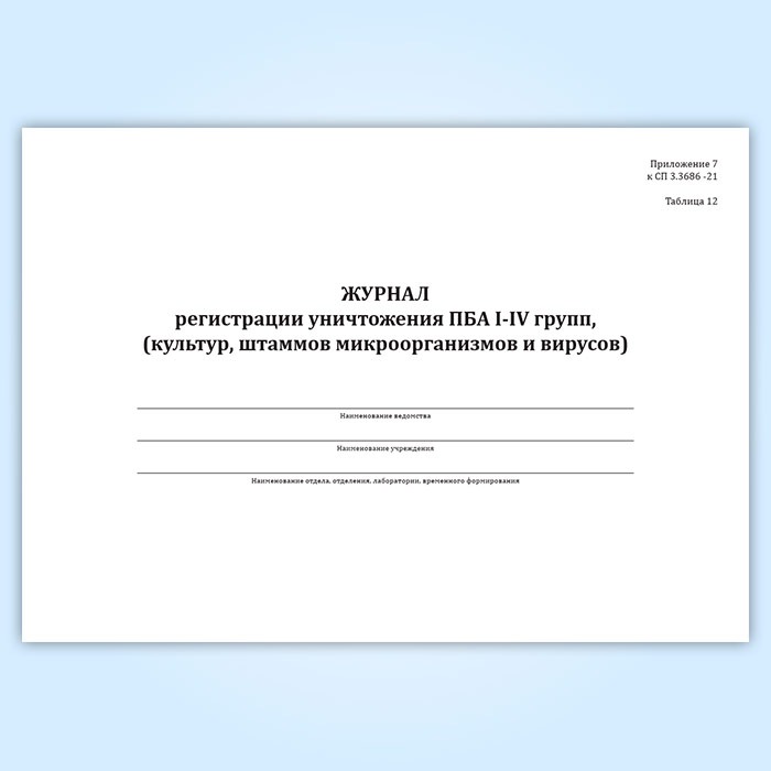 Журнал регистрации уничтожения ПБА I-IV групп, (культур, штаммов микроорганизмов и вирусов) в Альметьевске купить