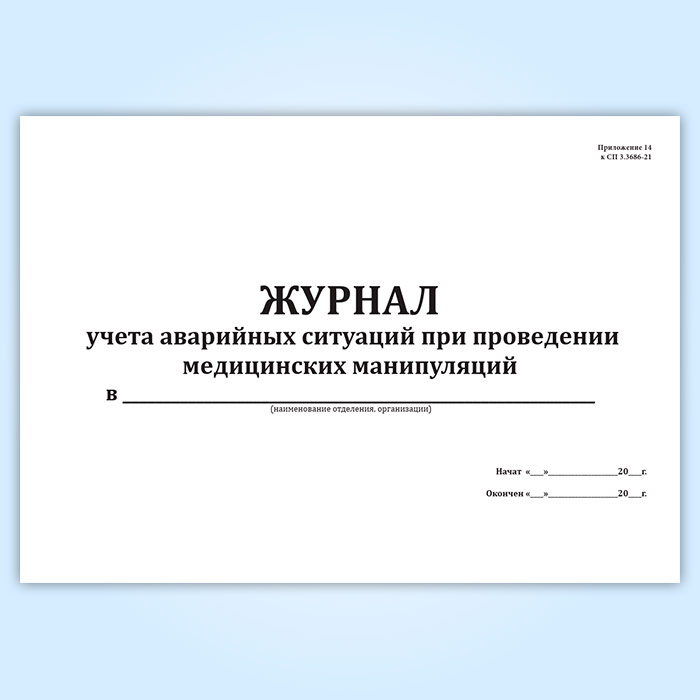 Журнал учета аварийных ситуаций при проведении медицинских манипуляций (СанПиН 3.3686-21) в Альметьевске купить
