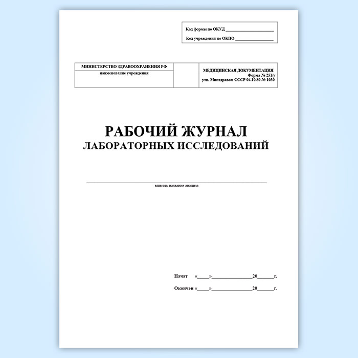 Рабочий журнал лабораторных исследований (форма 251/у) в Альметьевске купить