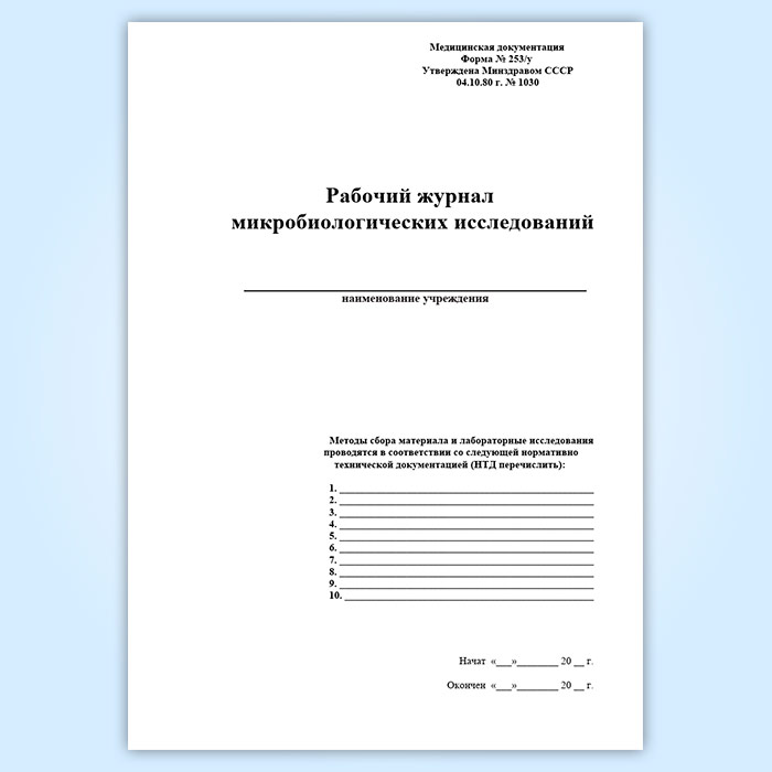 Рабочий журнал микробиологических исследований (форма 253/у) в Альметьевске купить