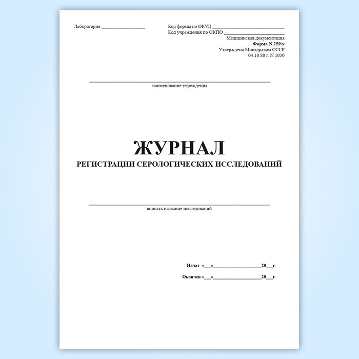 Журнал регистрации серологических исследований (форма 259/у) в Альметьевске купить