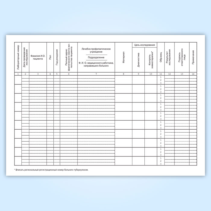 Журнал регистрации микроскопических исследований на туберкулез (форма 04-ТБ/У) в Альметьевске купить