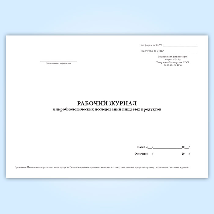 Рабочий журнал микробиологических исследований пищевых продуктов (форма 385/у) в Альметьевске купить
