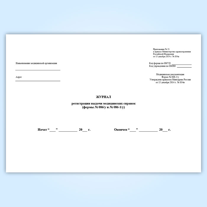 Журнал регистрации выдачи медицинских справок (форма № 086-2/у) в Альметьевске купить