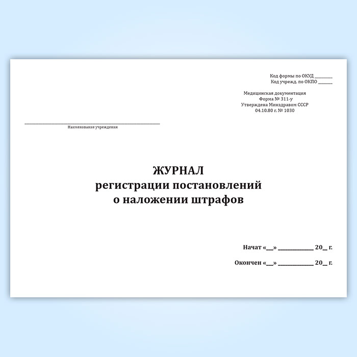 Журнал регистрации постановлений о наложении штрафов (форма 311-у) в Альметьевске купить