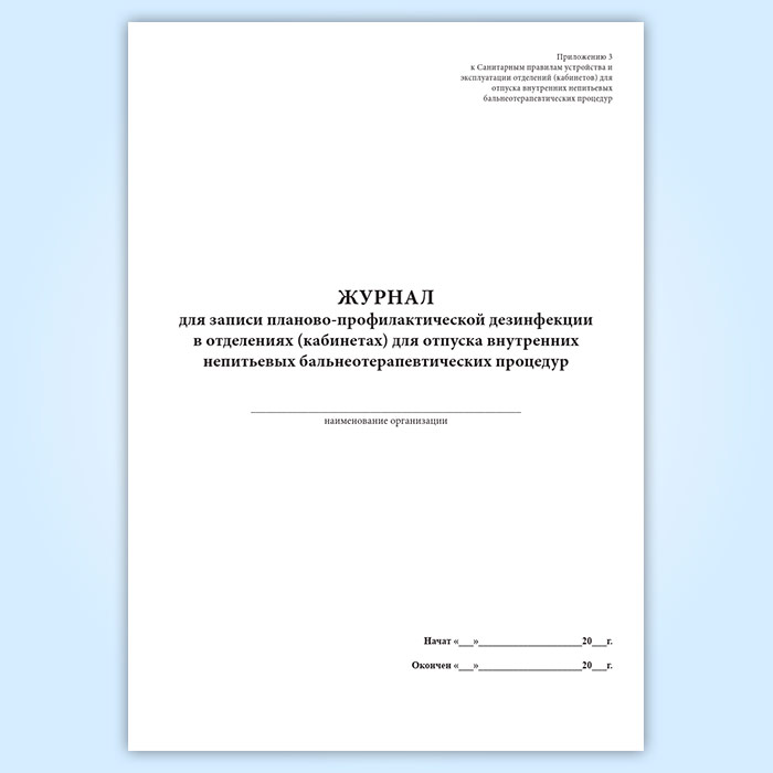 Журнал для записи планово-профилактической дезинфекции в отделениях (кабинетах) для отпуска внутренних непитьевых бальнеотерапевтических процедур в Альметьевске купить