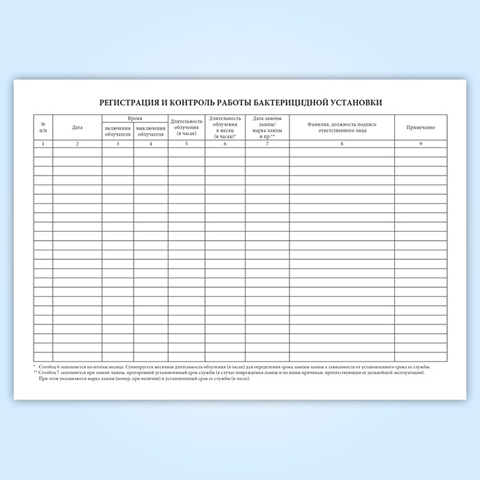 Журнал регистрации и контроля ультрафиолетовой бактерицидной установки (А4) в Альметьевске купить