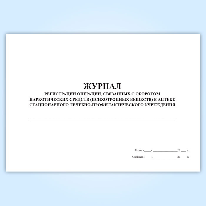 Журнал регистрации операций, связанных с оборотом наркотических средств и психотропных веществ в аптеке медицинской организации в Альметьевске купить
