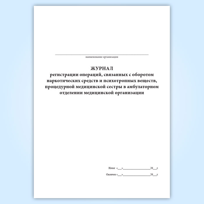 Журнал регистрации операций, связанных с оборотом наркотических средств и психотропных веществ, процедурной медицинской сестры в амбулаторном отделении медицинской организации в Альметьевске купить