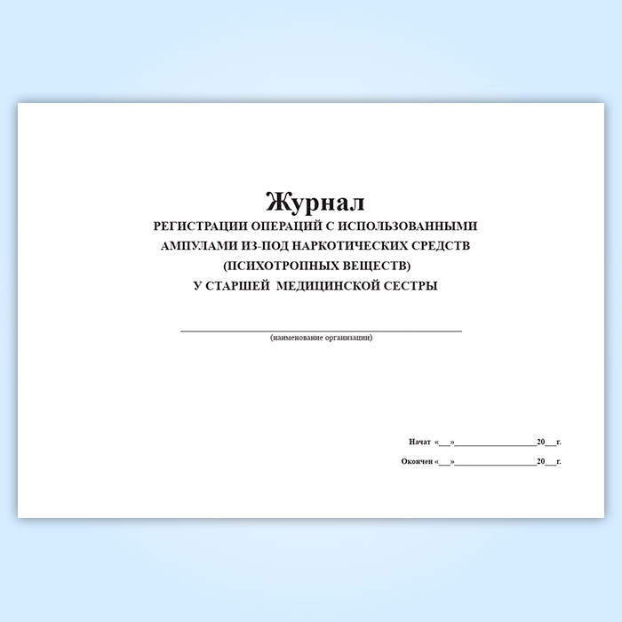 Журнал регистрации операций с использованными ампулами из-под наркотических средств (психотропных веществ) у старшей медицинской сестры в Альметьевске купить
