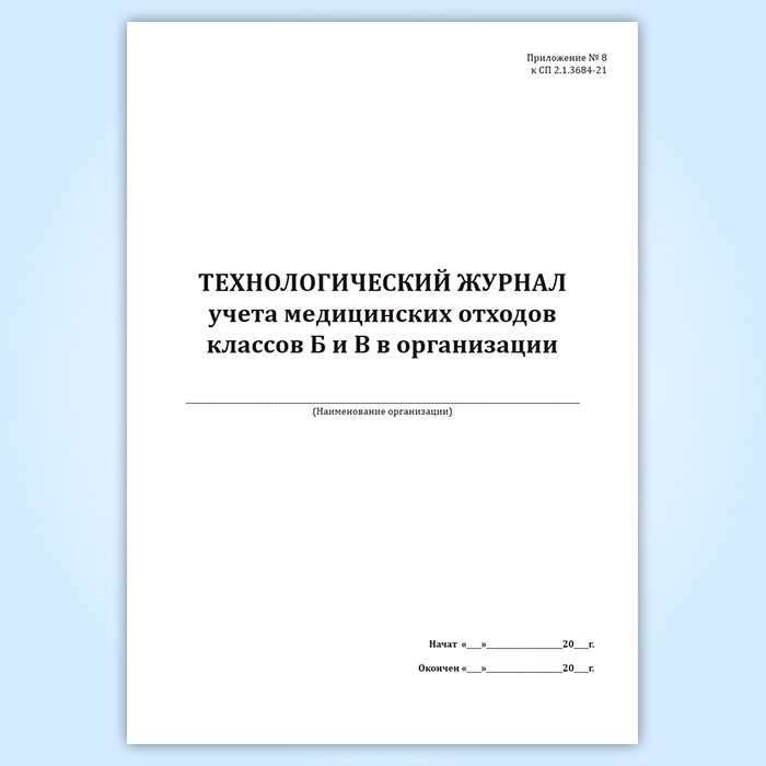 Технологический журнал учета медицинских отходов классов Б и В в организации в Альметьевске купить