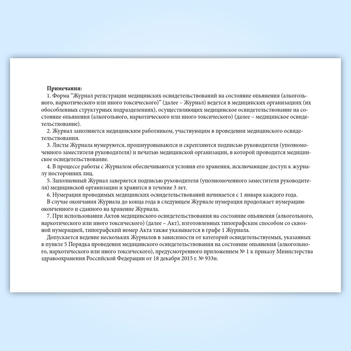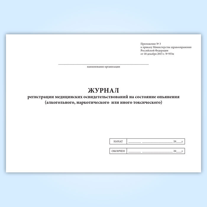 Журнал регистрации медицинских освидетельствований на состояние опьянения (алкогольного, наркотического или иного токсического) в Альметьевске купить