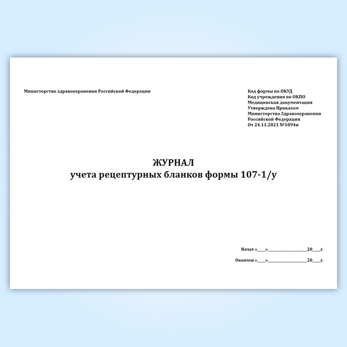 Журнал учета рецептурных бланков формы 107-1/у (новый) (Приказ Минздрава России от 24.11.2021 N 1094н) в Альметьевске купить