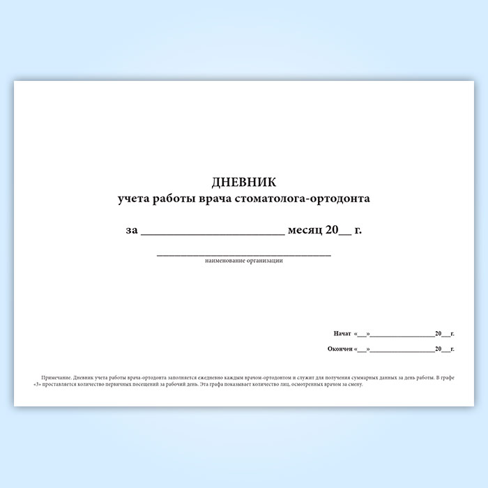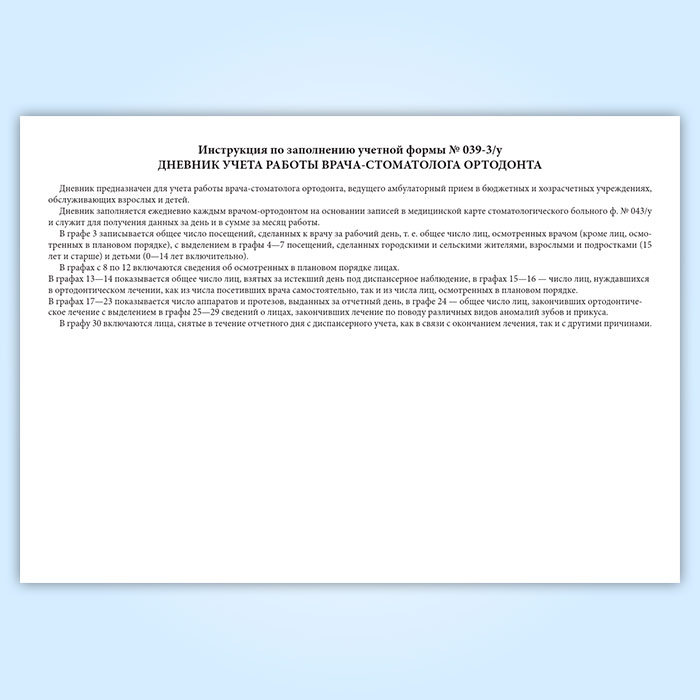 Дневник учета работы врача стоматолога-ортодонта (форма 039-3у) в Альметьевске купить