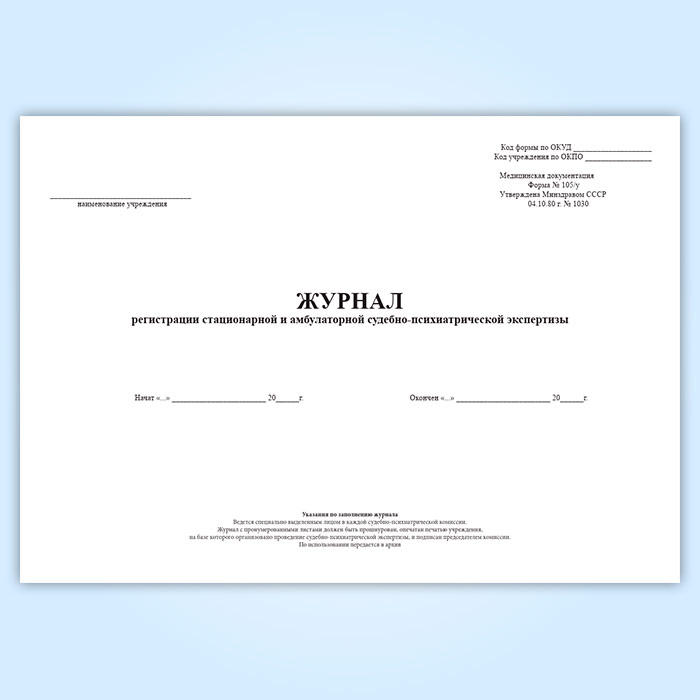 Журнал регистрации стационарной и амбулаторной судебно-психиатрической экспертизы (форма 105/у) в Альметьевске купить