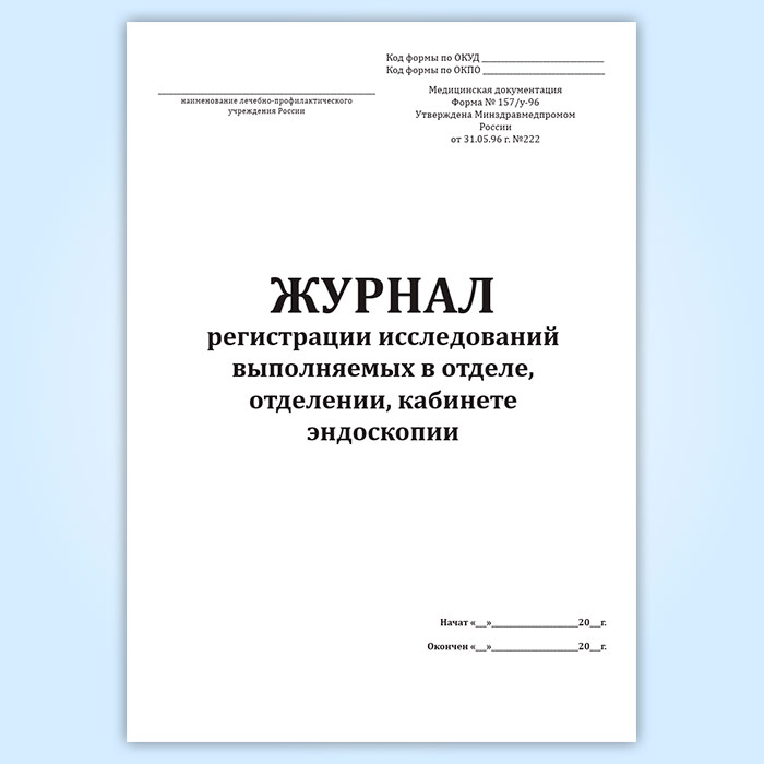 Журнал регистрации исследований выполняемых в отделе, отделении, кабинете эндоскопии (форма № 157/у-96) в Альметьевске купить