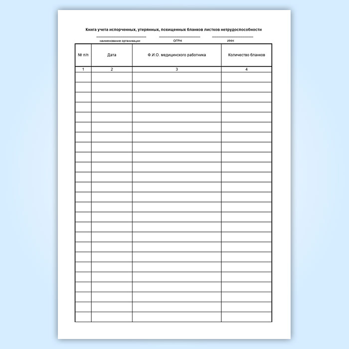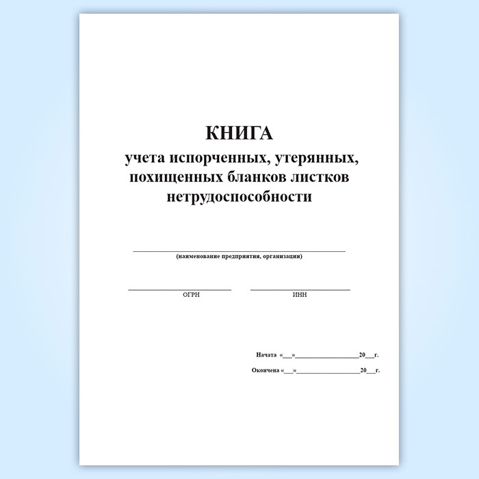 Книга учета испорченных, утерянных, похищенных бланков листков нетрудоспособности в Альметьевске купить