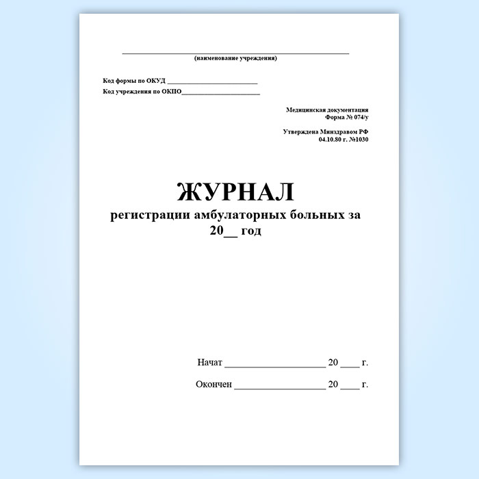 Журнал регистрации амбулаторных больных (форма 074/у) в Альметьевске купить
