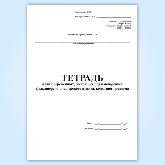 Тетрадь записи беременных, состоящих под наблюдением ФАП, колхозного роддома (форма 075/у) в Альметьевске купить