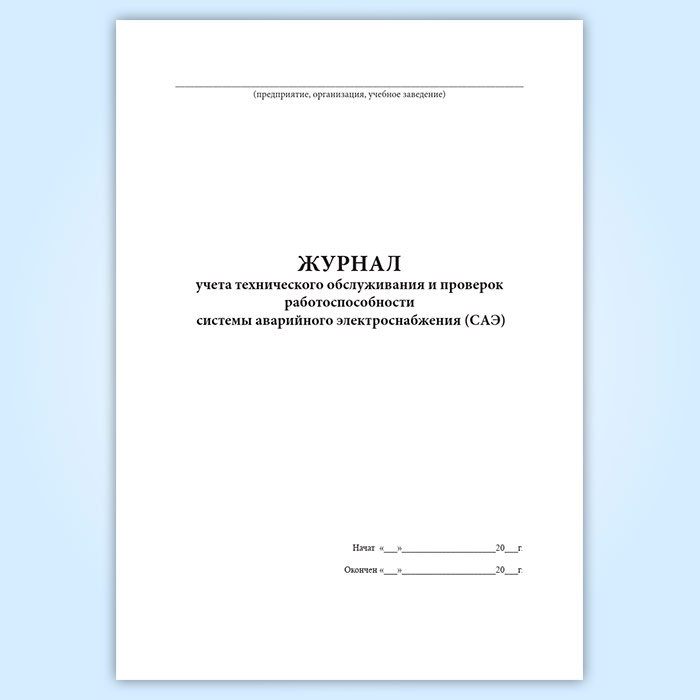 Журнал учета технического обслуживания и проверок работоспособности системы аварийного электроснабжения (САЭ) в Альметьевске купить
