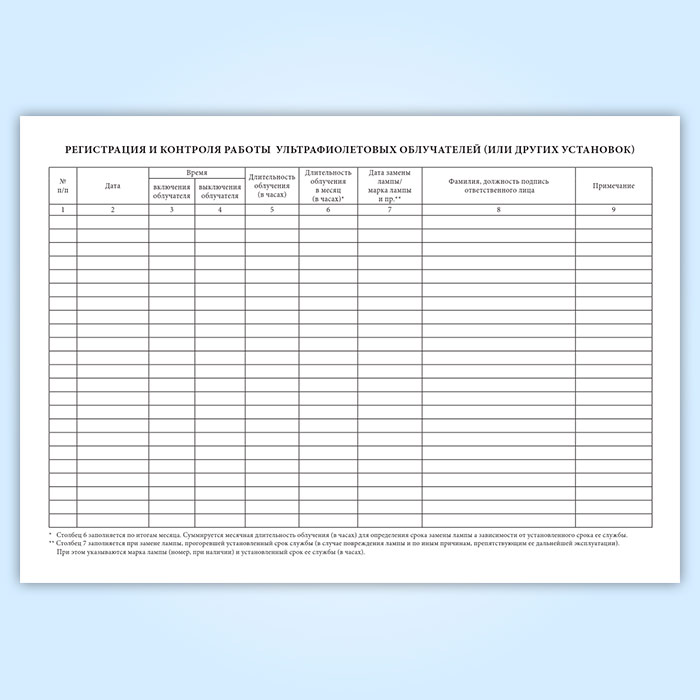 Журнал учета работы ультрафиолетовых облучателей (или других установок) (обсерватор) в Альметьевске купить