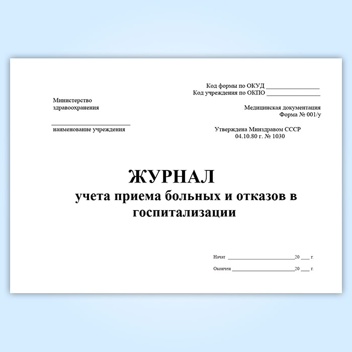 Журнал учета приема больных и отказов в госпитализации (форма 001/у) в Альметьевске купить