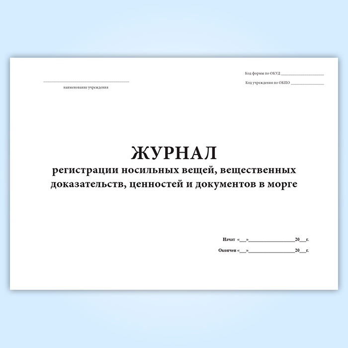 Журнал регистрации носильных вещей, вещественных доказательств, ценностей и документов в морге (форма 191/у) в Альметьевске купить
