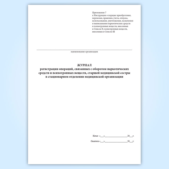 Журнал регистрации операций, связанных с оборотом наркотических средств и психотропных веществ старшей медицинской сестры в стационарном отделении медицинской организации в Альметьевске купить