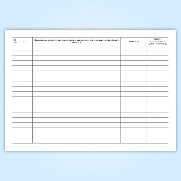 Журнал учета проведенных мероприятий по профилактике распространения коронавирусной инфекции COVID-19 в Альметьевске купить