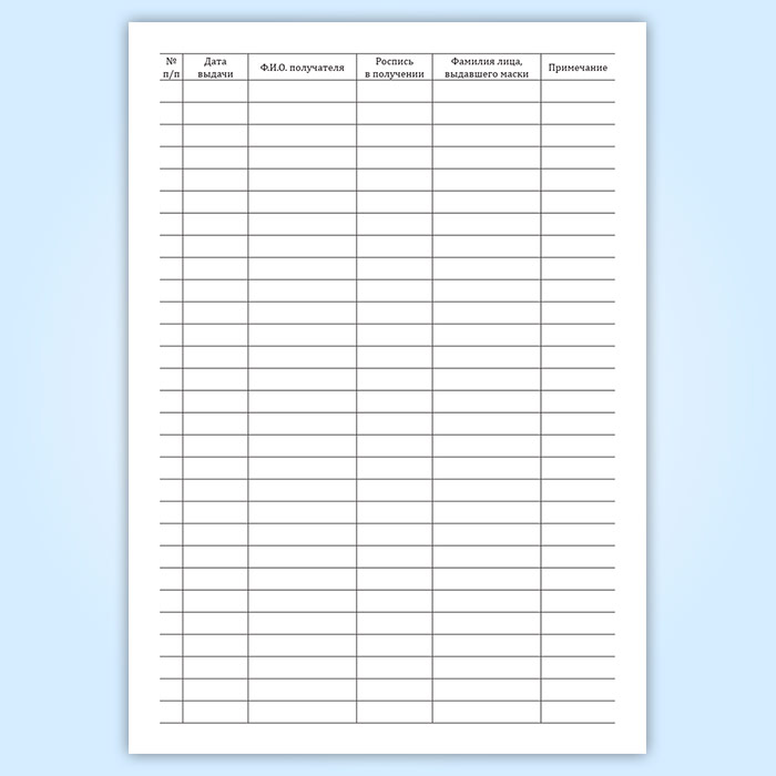 Журнал регистрации выдачи медицинских масок сотрудникам в Альметьевске купить