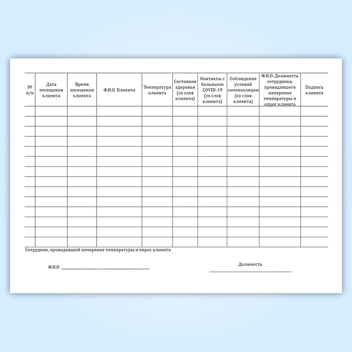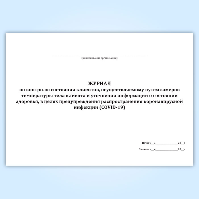 Журнал по контролю состояния клиентов, осуществляемому путем замеров температуры тела клиента и уточнения информации о состоянии здоровья, в целях предупреждения распространения коронавирусной инфекции (COVID-19) в Альметьевске купить