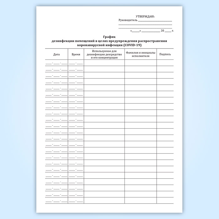 Журнал графика дезинфекции помещений в целях предупреждения распространения коронавирусной инфекции (COVID-19) в Альметьевске купить