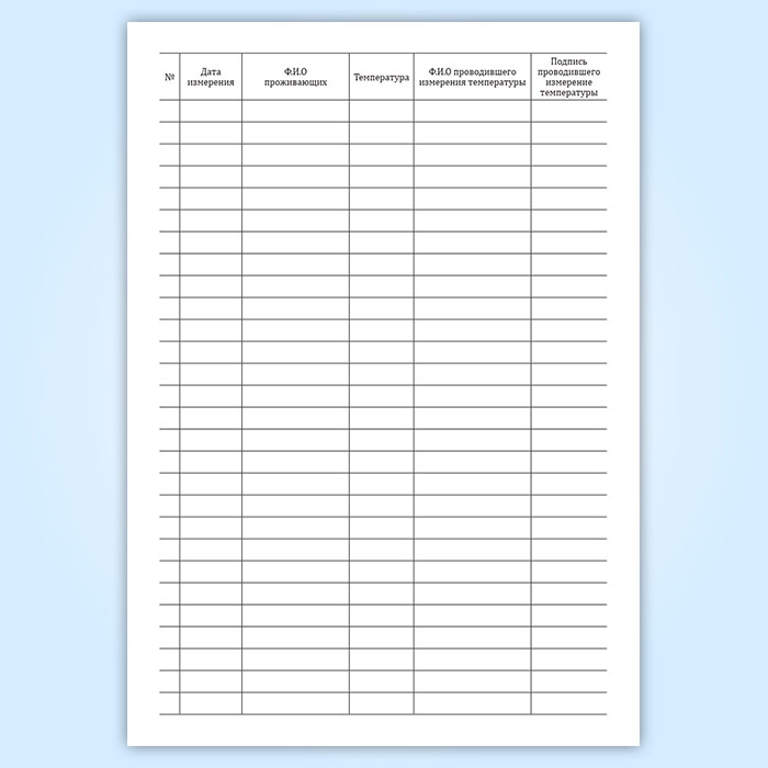 Журнал регистрации измерения температуры проживающих и служащих для профилактики коронавируса в Альметьевске купить