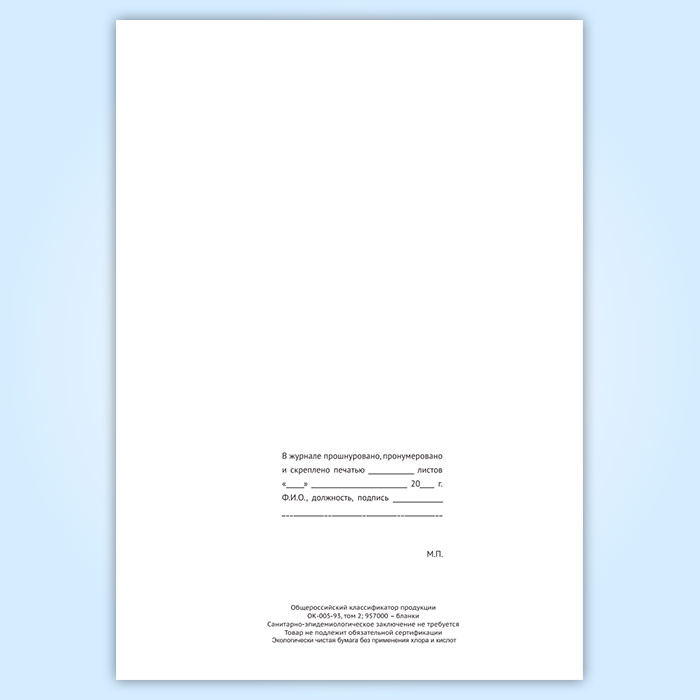 Вы получаете печатную продукцию прошнурованной и c местом для вашей печати в соответствии с действующими нормативными документами: