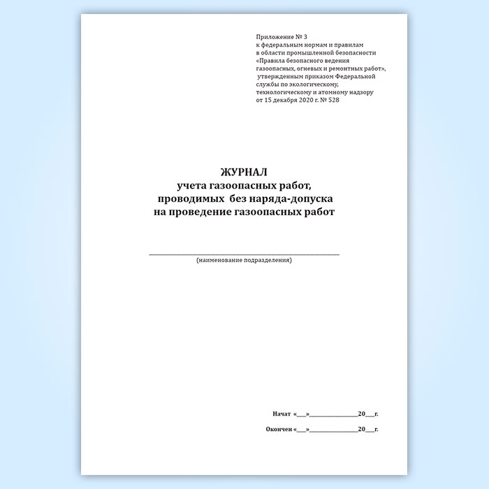 Журнал учета газоопасных работ, проводимых без наряда-допуска на проведение газоопасных работ в Альметьевске купить