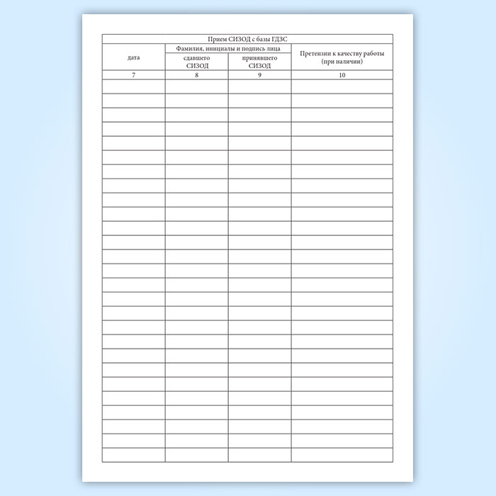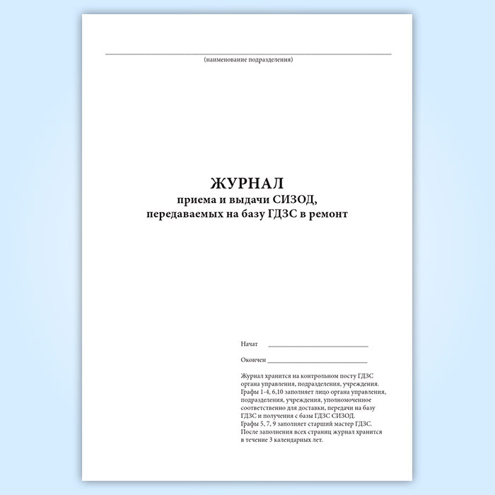 Журнал приема и выдачи СИЗОД, передаваемых на базу ГДЗС в ремонт в Альметьевске купить