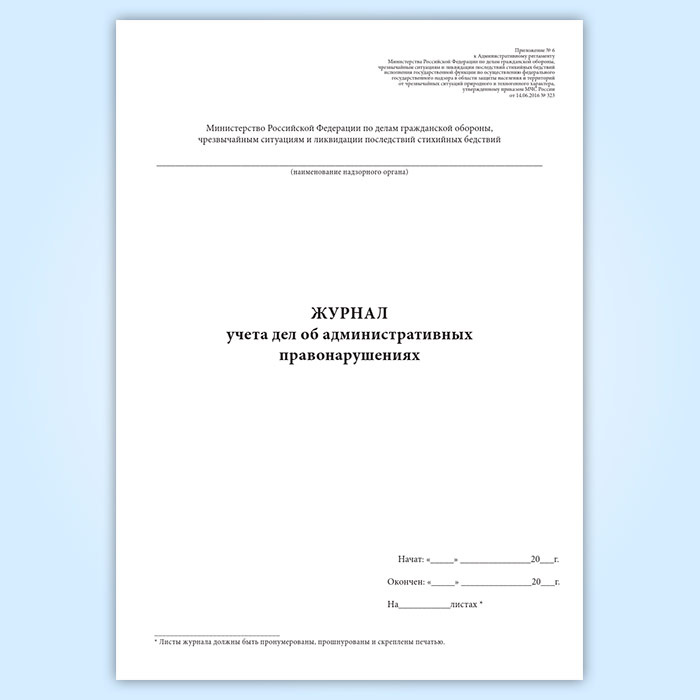 Журнал учета дел об административных правонарушениях (Приказ МЧС России от 14.06.2016 № 323) в Альметьевске купить