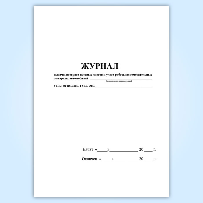 Журнал выдачи, возврата путевых листов и учета работы вспомогательных пожарных автомобилей в Альметьевске купить