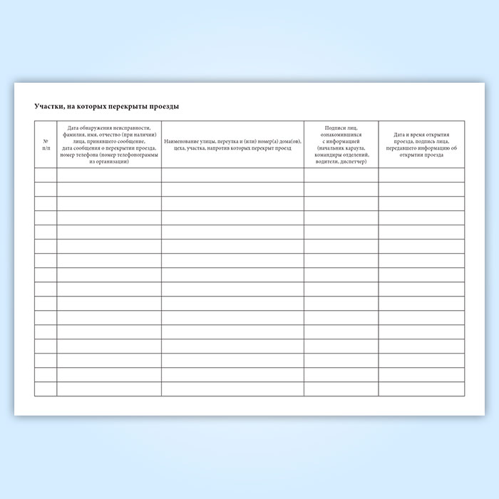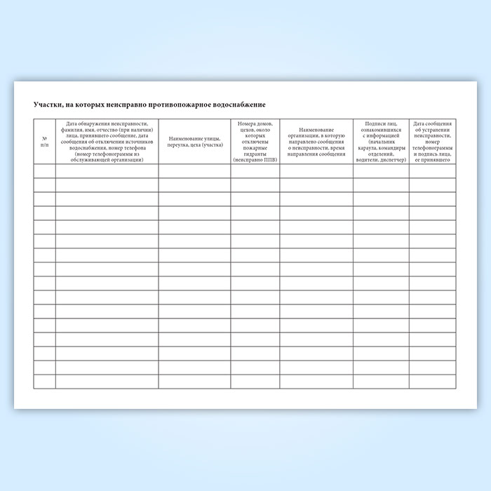 Журнал учета участков, перекрытых проездов и неисправного противопожарного водоснабжения, расположенных в районе выезда подразделения пожарной охраны в Альметьевске купить