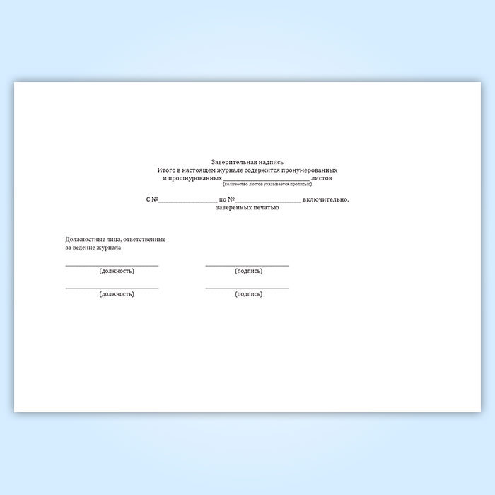 Вы получаете печатную продукцию прошнурованной и c местом для вашей печати в соответствии с действующими нормативными документами: