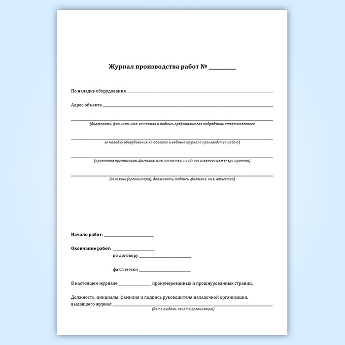 Журнал производства работ по наладке оборудования на объекте (СП 245.1325800.2015) в Альметьевске купить