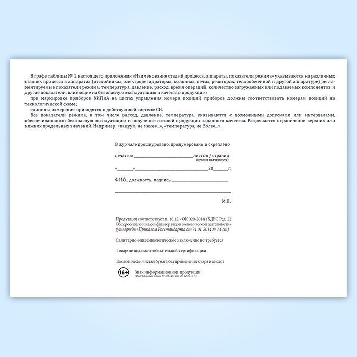 Вы получаете печатную продукцию прошнурованной и c местом для вашей печати в соответствии с действующими нормативными документами:
