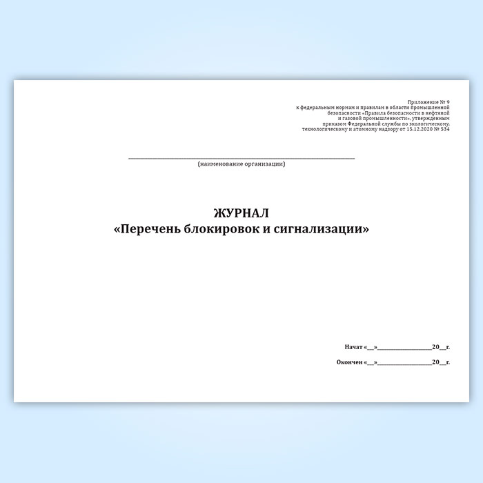 Журнал «Перечень блокировок и сигнализации» в Альметьевске купить