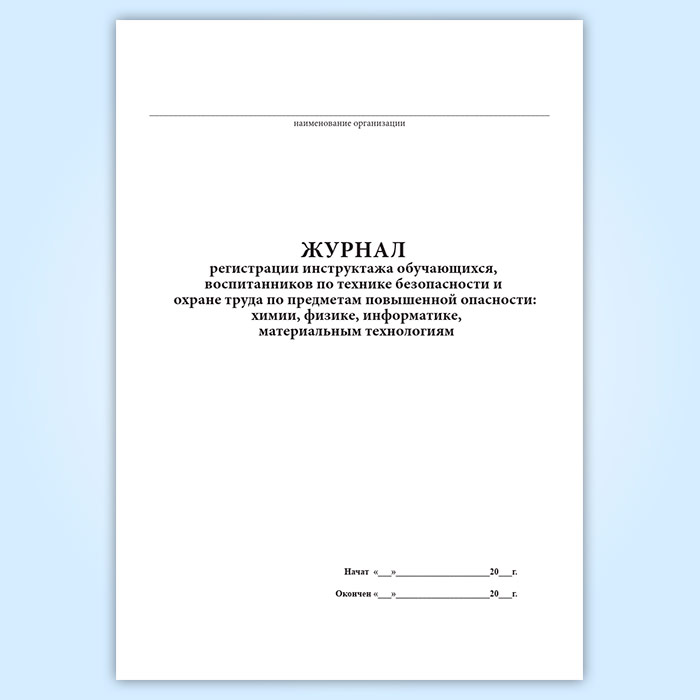 Журнал регистрации инструктажа обучающихся, воспитанников по технике безопасности и охране труда по предметам повышенной опасности: химии, физике, информатике, материальным технологиям в Альметьевске купить