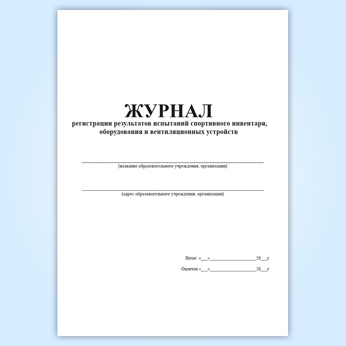 Журнал регистрации результатов испытаний спортивного инвентаря, оборудования и вентиляционных устройств в Альметьевске купить