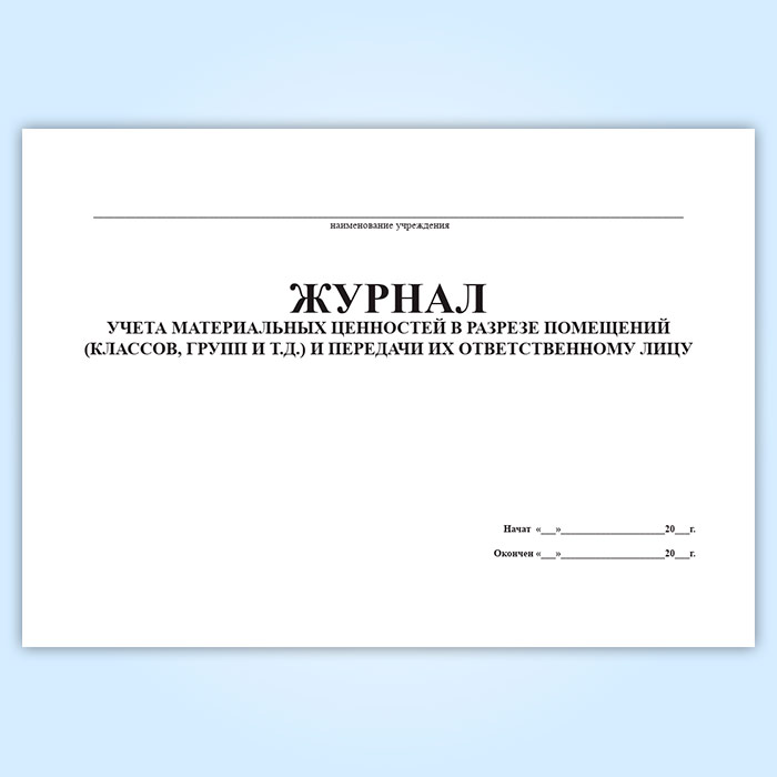 Журнал учета материальных ценностей в разрезе помещений (классов, групп и т.д.) и передачи их ответственному лицу в Альметьевске купить
